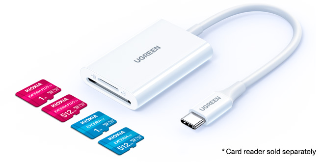 - 결과는 KIOXIA Corporation 테스트 환경에서 Kioxia EXCERIA PLUS G3 microSDXC UHS-I 256GB-1TB 카드 및 UGREEN CM265(35506) 카드 판독기를 사용하여 얻었다. 인용된 속도는 장치에서 보장되지 않으며 읽기/쓰기 속도는 장치 및 사용 조건에 따라 다를 수 있습니다. 구매 기간에 따라 CM265에 펌웨어 업데이트가 필요할 수 있습니다. 자세한 내용은 UGREEN에 문의하십시오. 다른 카드 리더기의 결과를 보려면 특정 카드 리더기 및 테스트된 카드 리더기 목록을 확인하십시오.